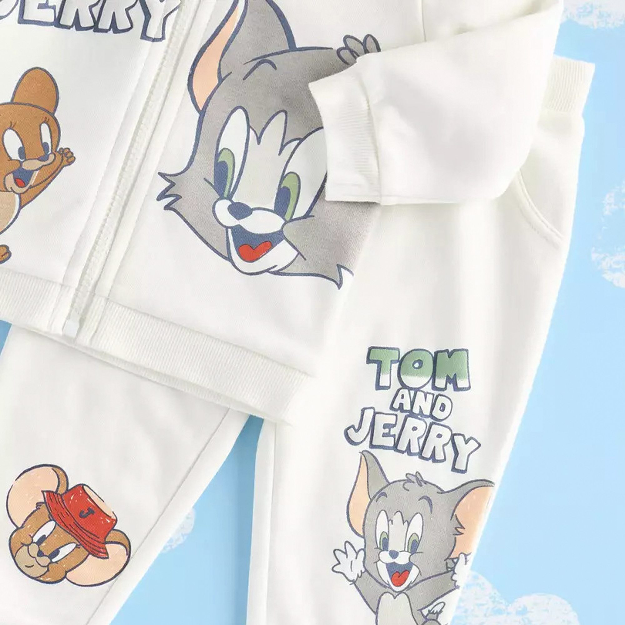 Keep your little one cosy and stylish with this coordinated clothing set. The zip-through hoodie ensures easy dressing, while the joggers with a drawstring provide a comfortable fit. Crafted from breathable fabric, this set is perfect for playtime adventures or casual outings. The cute Tom and Jerry print adds a cheerful touch, bringing vibrancy to your baby’s look.